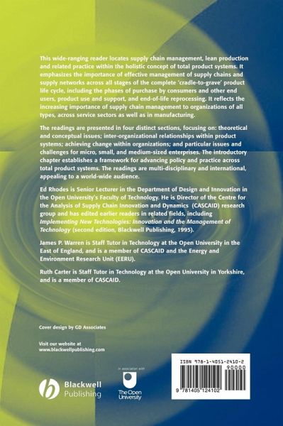 This wide-ranging reader locates supply chain management, lean production and related practice within the holistic concept of total product systems. It emphasises the importance of effective management of supply chains and supply networks across all stages of the complete 'cradle-to-grave' product life cycle, including the phases of purchase by consumers and other end users, product use and support, and end-of-life reprocessing. It reflects the increasing importance of supply chain management to organizations of all types, across service sectors as well as in manufacturing. The readings are presented in four distinct sections, focusing on: theoretical and conceptual issues; inter-organizational relationships within product systems; achieving change within organizations; and particular issues and challenges for micro, small, and medium-sized enterprises. An introductory chapter by the editors establishes a framework for advancing policy and practice across total products system. The readings are interdisciplinary and international, appealing to a world-wide audience.