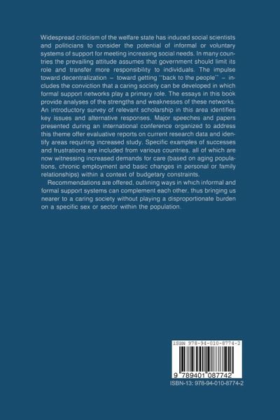 The historic Binnenhof, seat of the Dutch government in The Hague, provided the setting (January 1985) for a conference in which participants from eleven countries met to consider the theme: Support networks in a caring community: research and policy, fact and fiction. At the outset, conference leadership - provided by Professors J.M.L. Jonker (The Netherlands) and R.A.B. Leaper (United Kingdom) urged the conferees not to allow their enthusiasm for informal support networks to combine with the pervasive awareness of the failures of welfare states into a simplistic stance of advocacy, with a consequent appeal to politicians to direct state funds accordingly. Legitimate criticisms of the responses of welfare states to the needs of citizens were to be seen as the context for discussion, not the substance of conference deliberations. More specifically, if it is now apparent to many people that governmental assistance of individuals with social needs can lead to an undesirable dependency on the part of increasingly passive citizens, that awareness does not lend logical support to an ideological position that governmental expenditures are pern~c~ous per se - to be replaced as rapidly as possible by a return to reliance on self, family, friends and associations that are developed voluntarily and financed by those who are sufficiently interested.
