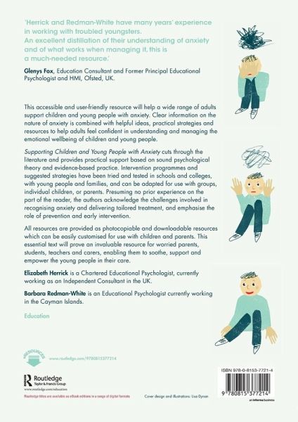 "This useful practical guide to understanding and managing anxiety is most timely. The external pressures on children and young people are many; the incidence of mental health problems is increasing and troubling youngsters and their families. Teachers, assistants, youth workers and parents will welcome this book with a loud hurrah as it provides clear information about the nature of anxiety and, best of all, there are many helpful ideas and practical programmes which will enable adults to feel confident in using tried and tested resources which have been shown to reduce anxiety in most children and young people. The authors, Liz Herrick and Barbara Redman-White, have many years' experience in working with troubled youngsters. This book is an excellent distillation of their understanding of anxiety and of what works when managing it. It is a much-needed resource for schools, colleges, childcare settings and parents." - Glenys Fox, Education Consultant and Former Principal Educational Psychologist and HMI, Ofsted, UK.