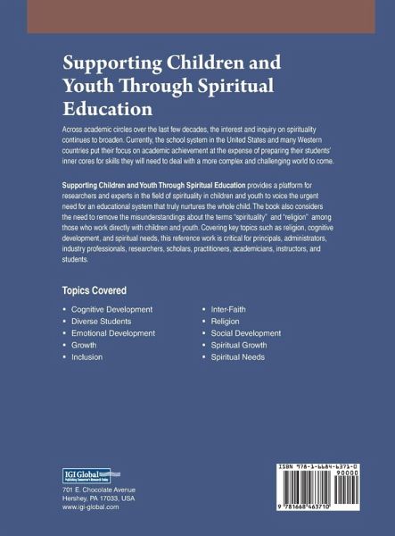 Across academic circles over the last few decades, the interest and inquiry on spirituality continues to broaden. Currently, the school system in the United States and many Western countries put their focus on academic achievement at the expense of preparing their students' inner cores for skills they will need to deal with a more complex and challenging world to come. Supporting Children and Youth Through Spiritual Education provides a platform for researchers and experts in the field of spirituality in children and youth to voice the urgent need for an educational system that truly nurtures the whole child. The book also considers the need to remove the misunderstandings about the terms "spirituality" and "religion" among those who work directly with children and youth. Covering key topics such as religion, cognitive development, and spiritual needs, this reference work is critical for principals, administrators, industry professionals, researchers, scholars, practitioners, academicians, instructors, and students.