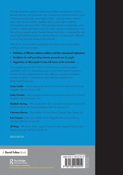 Fully updated with the 2014 SEND Code of Practice and the guidance published in 2014 on 'Supporting pupils at school with medical conditions', this text will help professionals be more effective in supporting learners in a variety of settings. It also features useful checklists, templates and photocopiable resources.