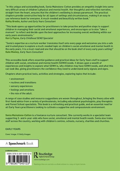 "In this unique and outstanding book, Sonia Mainstone-Cotton provides an empathic insight into some very difficult areas of children's physical and mental health. Her thoughtful and reflective narrative, straight from the heart, ensures that the children's wellbeing is always paramount. The practical chapters provide constructive help for all types of settings and circumstances, making it an easy to use reference book for everyone. A much-needed and beautifully written book." - Kathy Brodie, author and Early Years consultant