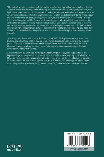 This textbook aims to support counsellors, psychotherapists, and counselling psychologists to develop a creative research-informed practice. Following from the authors' earlier title Enjoying Research, the book covers qualitative, quantitative, pluralistic, and mixed methods approaches with a special focus on diversity, researcher support and innovative methods. The book explores research during critical stages like question formulation, data gathering, ethics, analysis, and presentation of the findings. It mixes theory with illustrative real-life, 'how-to-do-it'-examples and reader activities. International experts contribute with examples ranging from arts-based 'decolonising' research to creative use of outcome- and survey-based approaches - with a shared interest in dialogues between 'scientific' and 'aesthetic' (or intuitive, embodied) means of knowing. This is essential reading for anyone looking for a book that combines self-awareness with analytical and practical skills in counselling and psychotherapy related research.