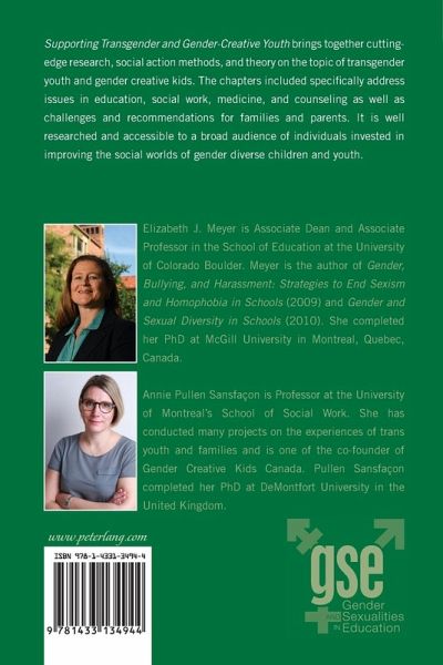 Elizabeth J. Meyer is Associate Dean and Associate Professor in the School of Education at the University of Colorado Boulder. Meyer is the author of Gender, Bullying, and Harassment: Strategies to End Sexism and Homophobia in Schools (2009) and Gender and Sexual Diversity in Schools (2010). She completed her PhD at McGill University in Montreal, Quebec, Canada. Annie Pullen Sansfaçon is Professor at the University of Montreal¿s School of Social Work. She has conducted many projects on the experiences of trans youth and families and is one of the co-founder of Gender Creative Kids Canada. Pullen Sansfaçon completed her PhD at DeMontfort University in the United Kingdom.