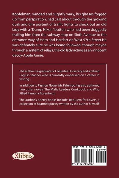 Kopfelman, winded and slightly wary, his glasses fogged up from perspiration, had cast about through the growing dusk and dire portent of traffic lights to check out an old lady with a "Dump Nixon" button who had been doggedly trailing him from the subway stop on Sixth Avenue to the entrance-way of Horn and Hardart on West 57th Street.He was definitely sure he was being followed, though maybe through a system of relays, the old lady acting as an innocent decoy-Apple Annie.