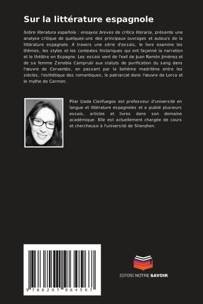 Sobre literatura española : ensayos breves de crítica literaria, présente une analyse critique de quelques-uns des principaux ouvrages et auteurs de la littérature espagnole. À travers une série d'essais, le livre examine les thèmes, les styles et les contextes historiques qui ont façonné la narration et le théâtre en Espagne. Les essais vont de l'exil de Juan Ramón Jiménez et de sa femme Zenobia Camprubí aux statuts de purification du sang dans l'oeuvre de Cervantès, en passant par la bohème madrilène entre les siècles, l'esthétique des romantiques, le patriarcat dans l'oeuvre de Lorca et le mythe de Carmen.