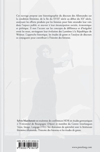 Sylvie Marchenoir est maîtresse de conférences HDR en études germaniques à l'Université de Bourgogne (Dijon) et membre du Centre Interlangues Texte, Image, Langage (TIL). Ses domaines de spécialité sont la littérature féminine allemande, l'histoire des femmes et les études de genre.