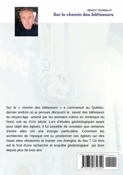 Sur le ' chemin des bâtisseurs ' a commencé au Québec, dernier endroit où je pensais découvrir le savoir des bâtisseurs du moyen-âge amené par les premiers colons en Amérique du Nord, soit au XVIe siècle. Persuadé que seul mon pays natal avait su préserver dans ses pierres ce savoir, celui-ci fut sûrement exporté en Nouvelle-France par des moines bâtisseurs, héritiers directs du savoir druidique.Lors d'études géobiologiques sacrées ayant pour objet des églises, il fut possible de constater que certaines d'entre elles ont une énergie particulière. Comment les architectes de l'époque ont su positionner ces églises sur des hauts sites vibratoires et manier ces énergies du lieu ? Ce livre est le fruit d'une recherche et enquête géobiologique qui dure depuis plus de trois ans.