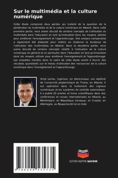 Cette étude comprend deux parties qui traitent de la question de la pénétration du multimédia et de la culture numérique en Albanie. Dans cette première partie, nous avons discuté de certains concepts de l'utilisation du multimédia dans l'éducation en tant qu'innovation dans les moyens utilisés pour améliorer l'enseignement et l'apprentissage. Une analyse comparative a également été élaborée pour mettre en évidence la tendance de l'utilisation des multimédias en Albanie. Dans la deuxième partie, nous avons discuté de certains concepts relatifs à l'utilisation de la culture numérique en général et en particulier dans l'éducation en tant qu'innovation dans les moyens utilisés pour améliorer l'enseignement et l'apprentissage. Les enquêtes menées dans le cadre de cette étude visent à fournir des résultats quantitatifs sur le niveau d'utilisation des ressources de la culture numérique dans l'enseignement et l'apprentissage.