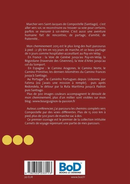 Auteur, conférencier, j'ai parcouru à huit reprises le chemin vers Santiago en empruntant des chemins différents. Plus de 15 000 km, plus de 500 jours sac à dos.
