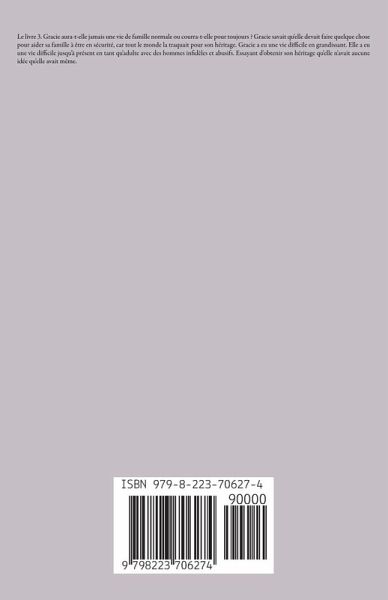 Le livre 3. Gracie aura-t-elle jamais une vie de famille normale ou courra-t-elle pour toujours ? Gracie savait qu'elle devait faire quelque chose pour aider sa famille à être en sécurité, car tout le monde la traquait pour son héritage. Gracie a eu une vie difficile en grandissant. Elle a eu une vie difficile jusqu'à présent en tant qu'adulte avec des hommes infidèles et abusifs. Essayant d'obtenir son héritage qu'elle n'avait aucune idée qu'elle avait même.
