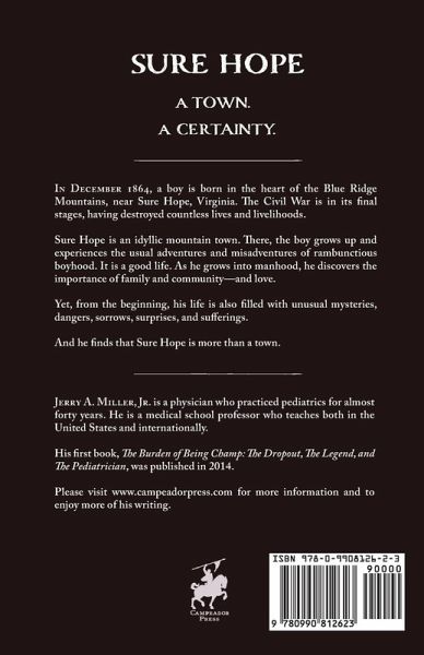 In December 1864, a boy is born in the heart of the Blue Ridge Mountains, near Sure Hope, Virginia. The Civil War is in its final stages, having destroyed countless lives and livelihoods. Sure Hope is an idyllic mountain town. There, the boy grows up and experiences the usual adventures and misadventures of rambunctious boyhood. It is a good life. As he grows into manhood, he discovers the importance of family and community-and love. Yet, from the beginning, his life is also filled with unusual mysteries, dangers, sorrows, surprises, and sufferings. And he finds that Sure Hope is more than a town.