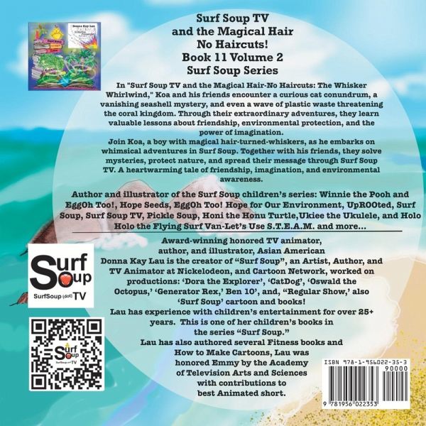 "Surf Soup TV and the Magical Hair-No Haircuts: The Whisker Whirlwind" Book 11 Volume 2 Embark on a captivating adventure in the enchanting world of Surf Soup, where imagination knows no bounds. Join Koa, a young boy with magical hair, as he faces a surprising transformation-his hair turns into magnificent whiskers! With his friends EggOh and Ham by his side, Koa embraces his feline appearance and sets off on a mission to help kittens, solve mysteries, and protect the wonders of nature. In "Surf Soup TV and the Magical Hair-No Haircuts: The Whisker Whirlwind," Koa and his friends encounter a curious cat conundrum, a vanishing seashell mystery, and even a wave of plastic waste threatening the coral kingdom. Through their extraordinary adventures, they learn valuable lessons about friendship, environmental protection, and the power of imagination. But Koa's journey doesn't stop there. When he discovers an old TV on Plastic Island, something incredible happens-it magically works when he puts it on his head! Inspired by this newfound platform, Koa and his friends decide to create Surf Soup TV, a show that spreads their message of environmental awareness and inspires others to take action. With vivid illustrations that bring the whimsical world of Surf Soup to life, "Surf Soup TV and the Magical Hair-No Haircuts: The Whisker Whirlwind" is a heartwarming tale that entertains, educates, and sparks the imagination. Join Koa and his friends as they embark on an unforgettable journey, filled with magic, friendship, and the power to make a difference. Dive into the world of Surf Soup and discover the incredible wonders that await.