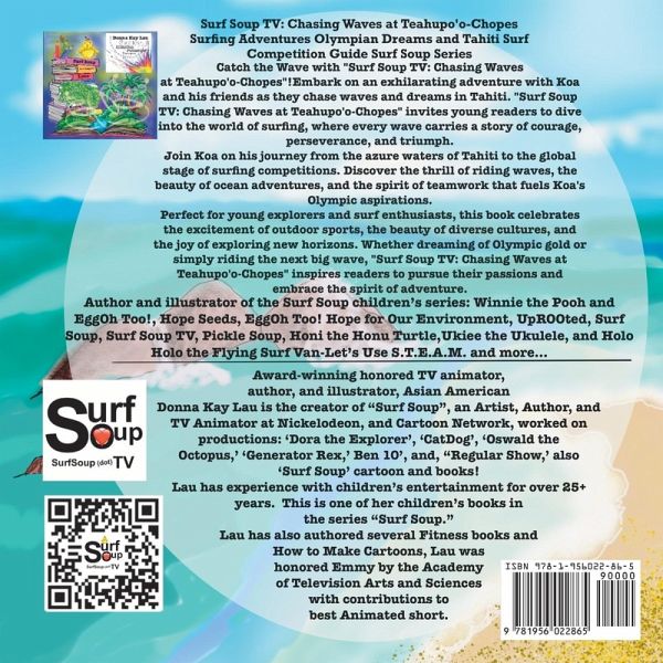 Surf Soup TV: Chasing Waves at Teahupo'o-Chopes Subtitle: Surfing Adventures Olympian Dreams and Tahiti Surf Competition Guide Embark on an exhilarating journey with "Surf Soup TV: Chasing Waves at Teahupo'o-Chopes"! Join Koa, a young adventurer with dreams as deep as the Pacific, as he sets out to conquer the legendary waves of Teahupo'o. Guided by the wisdom of local surfers and the spirit of the ocean, Koa learns that surfing is more than just a sport-it's a testament to courage, perseverance, and the pursuit of dreams. From the magical flying surf van, Holo Holo, to the sun-kissed shores of Tahiti, every page of this vibrant tale invites young readers to discover the thrill of riding waves and the beauty of ocean adventures. As Koa prepares for a major surfing competition, he faces challenges that test his determination and spirit. Despite setbacks, Koa's journey is a celebration of teamwork, resilience, and the unyielding passion that fuels his Olympic dreams. Explore the rich culture and stunning geography of Tahiti, alongside Koa's globe-trotting adventures. Delve into the history of surfing, its evolution into an Olympic sport, and the inspiring stories of athletes who compete on the world stage. Discover the diversity of world cultures and landmarks through Koa's quest to ride the perfect wave and represent his love for surfing globally. Perfect for young explorers and surf enthusiasts alike, "Surf Soup TV: Chasing Waves at Teahupo'o-Chopes" is a captivating blend of storytelling and educational exploration. Dive into an unforgettable adventure that celebrates the spirit of exploration, the thrill of competition, and the beauty of chasing dreams under the Tahitian sun.