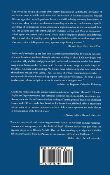 The idea of a common American culture has been in retreat for a generation or more. Arguments emphasizing difference have discredited the grand synthetic studies that marginalized groups and perspectives at odds with the master narrative. Surface and Depth: The Quest for Legibility in American Culture is a fresh attempt to revitalize an interpretive overview. It seeks to recuperate a central tradition while simultaneously recognizing how much that tradition has occluded. The book focuses on the American zeal for knowing or making accessible. This compulsion has a long history stretching back to Puritan anti-monasticism; to the organization of the landscape into clearly delineated gridwork sections; and to the creation of a national government predicted on popular vigilance. It can be observed in the unmatched American receptivity to the motion pictures and to psychoanalysis: the first a technology of visual surfaces, the second a technique for plumbing interior depths. Popular literature, especially the Western and the detective story, has reinscribed the cult of legibility. Each genre features a plot that drives through impediments to transparent resolution. Elite literature has adopted a more contradictory stance. The landmarks of the American canon typically embark on journeys of discovery while simultaneously renouncing the possibility of full disclosure (as in Ahab's doomed pursuit of the "inscrutable" white whale). The notorious modernism of American literature, its precocious attraction to obscurity and multiple meaning, evolved as an effort to block the intrusions of a hegemonic cultural dynamic. The American passion for knowability has been prolific of casualties. Acts of making visible have always entailed the erasure and invisibility of racial minorities. American society has also routinely trespassed on customary areas of reserve. A nation intolerant of the hidden paradoxically pioneered the legal concept of privacy, but it did so in reaction to its own invasive excesses.