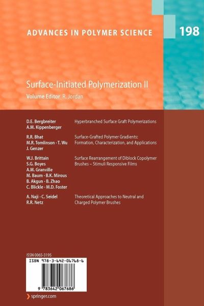 "An excellent starting point for readers planning to enter the rapidly progressing and growing field of surface-initiated polymerization (SIP) as well as for experts ... . Each contribution provides a reasonably current and thorough treatment of one or more aspects of the field ... . Several of the contributions do an exemplary job of teaching the reader ... . I recommend this ... highly as a resource for current practitioners and those readers just beginning careers in this field, my own students included." (Scott M. Husson, Journal of the American Chemical Society, Vol. 128 (42), 2006)
