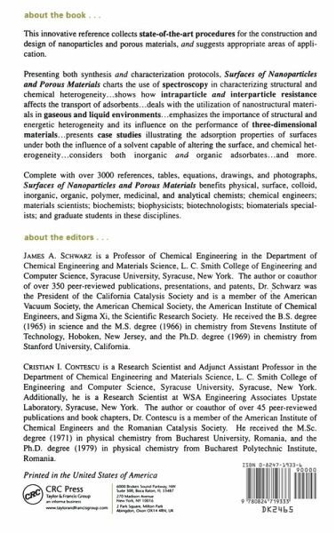 This innovative reference collects state-of-the-art procedures for the construction and design of nanoparticles and porous material while suggesting appropriate areas of application. Presenting both synthesis and characterization protocols, Surfaces of Nanoparticles and Porous Materials contains over 3000 references, tables, equations, drawings, and photographs. It examines the thermodynamics and kinetics of adsorption involving organic and inorganic liquids, solids, and gaseous media.. Topics include characterization, transport processes, diffusion, and the adsorption of heavy metals, ions, proteins, and pharmaceutical organics.