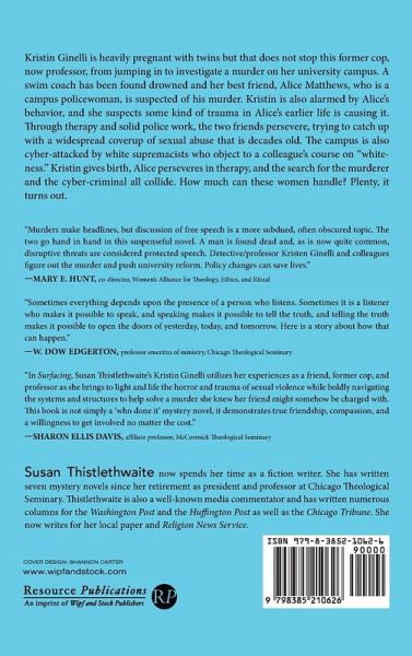Kristin Ginelli is heavily pregnant with twins but that does not stop this former cop, now professor, from jumping in to investigate a murder on her university campus. A swim coach has been found drowned and her best friend, Alice Matthews, who is a campus policewoman, is suspected of his murder. Kristin is also alarmed by Alice's behavior, and she suspects some kind of trauma in Alice's earlier life is causing it. Through therapy and solid police work, the two friends persevere, trying to catch up with a widespread coverup of sexual abuse that is decades old. The campus is also cyber-attacked by white supremacists who object to a colleague's course on ""whiteness."" Kristin gives birth, Alice perseveres in therapy, and the search for the murderer and the cyber-criminal all collide. How much can these women handle? Plenty, it turns out.