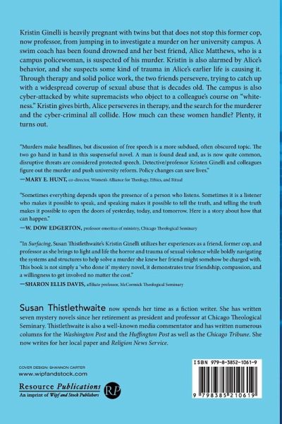 Kristin Ginelli is heavily pregnant with twins but that does not stop this former cop, now professor, from jumping in to investigate a murder on her university campus. A swim coach has been found drowned and her best friend, Alice Matthews, who is a campus policewoman, is suspected of his murder. Kristin is also alarmed by Alice's behavior, and she suspects some kind of trauma in Alice's earlier life is causing it. Through therapy and solid police work, the two friends persevere, trying to catch up with a widespread coverup of sexual abuse that is decades old. The campus is also cyber-attacked by white supremacists who object to a colleague's course on ""whiteness."" Kristin gives birth, Alice perseveres in therapy, and the search for the murderer and the cyber-criminal all collide. How much can these women handle? Plenty, it turns out.