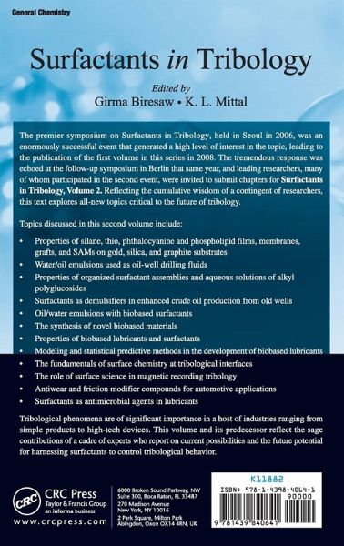 The premier symposium on Surfactants in Tribology, held in Seoul in 2006, was an enormously successful event that generated a high level of interest in the topic, leading to the publication of the first volume in this series in 2008. The tremendous response was echoed at the follow-up symposium in Berlin that same year, and leading researchers, many of whom participated in the second event, were invited to submit chapters for Surfactants in Tribology, Volume Two. Reflecting the cumulative wisdom of a contingent of researchers, this text explores all-new topics critical to the future of tribology. Topics discussed in this second volume include: Properties of silane, thio, phthalocyanine and phospholipid films, membranes, grafts, and SAMs on gold, silica, and graphite substrates Water/oil emulsions used as oil-well drilling fluids Properties of organized surfactant assemblies and aqueous solutions of alkyl polyglucosides Surfactants as demulsifiers in enhanced crude oil production from old wells Oil/water emulsions with biobased surfactants The synthesis of novel biobased materials Properties of biobased lubricants and surfactants Modeling and statistical predictive methods in the development of biobased lubricants The fundamentals of surface chemistry at tribological interfaces The role of surface science in magnetic recording tribology Antiwear and friction modifier compounds for automotive applications Surfactants as antimicrobial agents in lubricants Tribological phenomena are of significant importance in a host of industries ranging from simple products to high-tech devices. This volume and its predecessor reflect the sage contributions of a cadre of experts who report on current possibilities and future potential for harnessing sur