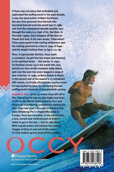 the Surfing diary of the year by World Champion Mark Occhilupo\'9291s as he travels the world: Fiji, South Africa, the tournament at Bells and more. this, his on-the-road diary, gives us an insight into the mind of one of Australia\'9291s cult sport heroes. It provides a rare opportunity to go with Occy as he defends his crown ¿he diary documents his observations on other surfers, his tournaments, mindset and life on the road.