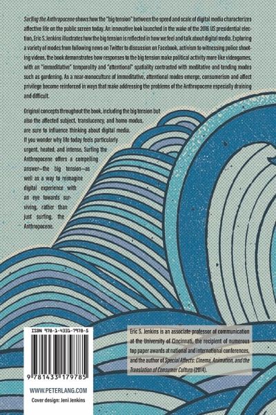 Surfing the Anthropocene shows how the "big tension" between the speed and scale of digital media characterizes affective life on the public screen today. An innovative look launched in the wake of the 2016 US presidential election, Eric S. Jenkins illustrates how the big tension is reflected in how we feel and talk about digital media. Exploring a variety of modes from following news on Twitter to discussion on Facebook, activism to witnessing police shooting videos, the book demonstrates how responses to the big tension make political activity more like videogames, with an "immeditative" temporality and "attentional" spatiality contrasted with meditative and tending modes such as gardening. As a near-monoculture of immeditative, attentional modes emerge, consumerism and affect privilege become reinforced in ways that make addressing the problems of the Anthropocene especially draining and difficult.