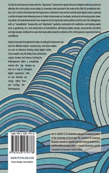 Surfing the Anthropocene shows how the "big tension" between the speed and scale of digital media characterizes affective life on the public screen today. An innovative look launched in the wake of the 2016 US presidential election, Eric S. Jenkins illustrates how the big tension is reflected in how we feel and talk about digital media. Exploring a variety of modes from following news on Twitter to discussion on Facebook, activism to witnessing police shooting videos, the book demonstrates how responses to the big tension make political activity more like videogames, with an "immeditative" temporality and "attentional" spatiality contrasted with meditative and tending modes such as gardening. As a near-monoculture of immeditative, attentional modes emerge, consumerism and affect privilege become reinforced in ways that make addressing the problems of the Anthropocene especially draining and difficult.