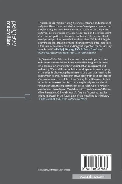 'Surfing the Global Tide' is an important book at an important time. With automakers worldwide being battered by the global financial crisis, speculation abounds about consolidation, realignment and bankruptcy. Wynn-Williams' ambitious work applies to any company on the edge. In pinpointing the minimum size a carmaker must be to survive on its own, his research draws richly from both the theories of economics and the realities of the factory floor. His answer is that successful automakers can churn out a surprisingly low number of vehicles per year. The implications are broad reaching for a range of manufacturers, from Japan's Mazda Motor Corp. and Germany's Daimler AG to the nascent Chinese brands. 'Surfing' is fascinating read for anyone interested in the future path of the globalized auto industry.' - Hans Greimel, Asia Editor, Automotive News