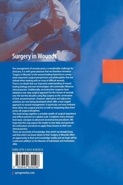 I Background.- 1 The Pathophysiology of Acute Wounds.- 2 Pathophysiology of Chronic Wounds.- 3 Control of Infection.- 4 Radiotherapy and Wounds.- 5 The Sequelae of the Cutaneous Radiation Syndrome.- II Debridement of Wounds.- 6 Surgical Debridement.- 7 Use of High-Pressure Waterjets in Wound Debridement.- 8 Autolytic Debridement.- III Wound Preparations and Treatment.- 9 Wound-Bed Preparation - Promotion of Granulation Tissue.- 10 Cleansing and Cleansers.- 11 Control of Exudate and Periwound Skin Care.- 12 Topical Negative-Pressure Therapy in Wound Management.- 13 Maggot Debridement.- IV Surgical Interventions in Wounds.- 14 Pre-Operative Requisites.- 15 Dressings for Chronic and Acute Wounds.- 16 Suture Materials and Techniques.- 17 Surgical Incision.- 18 Skin Grafts.- 19 Local and Regional Flaps.- 20 Free Flaps: Interests and Limits.- 21 Post-Operative Management of Skin Graft and Flap.- 22 Dermabrasion and Management of Donor Sites.- V Specific Wound Problems.- 23 Flaps for Upper Limb Reconstruction.- 24 Loss of Soft Tissue in Lower Limbs.- 25 Vacuum-Assisted Closure: Orthopaedic Applications.- 26 Osteomyelitis.- 27 Principles of Surgical Management of War Wounds.- 28 Animal and Human Bite Wounds.- 29 Enterocutaneous Fistulae.- 30 Pilonidal Sinus Disease.- 31 Acne Inversa.- VI Chronic Wound Problems.- 32 Surgery for Arterial Ulcers.- 33 Interventional Radiology for Revascularisation.- 34 Venous Ulcer Surgery.- 35 Diabetic Foot Surgery.- 36 Polyneuropathic Ulcers Surgery.- 37 Pressure-Relieving Systems and Surgery.- 38 Surgical Therapy for Pressure Sores.- VII Burns.- 39 Thermal Burns Management.- 40 Electrical Burns.- 41 Chemical Burns Management.- 42 The Meek-Wall Micrograft Technique.- 43 Skin Substitutes - an Overview of Cultured Epithelia to Treat Wounds.- 44 Skin Equivalents - Integra® in Acute Wounds.- 45 Rehabilitation and Post-Burn Care.- 46 Compression Therapy.- 47 Frostbite: Current Concepts in Pathophysiology and Management.- VIII Treatment of Scaring.- 48 Fundamental Aspects of Extracellular Matrix.- 49 Prevention of Excessive Scar Formation - a Surgical Perspective.- 50 The Non-Surgical Management of Hypertrophic Scars and Keloids.- 51 Surgery of Scars: Hypertrophic, Keloid and Aesthetic Sequellae.- 52 Pathologic Scar Prevention.- 53 Psychological Consequences of Facial Scarring.- IX Future Perspectives in Wound Management.- 54 Prefabrication of Growth Factors and Gene Therapy.- X Conclusions.- 55 Changing Philosophies in Reconstructive Surgery.- XI Appendix.