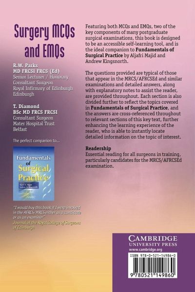 Featuring both MCQs and EMQs, two of the key components of many postgraduate surgical examinations, this book is designed to be an accessible self-learning tool, and is the ideal companion to Fundamentals of Surgical Practice by Aljafri Majid and Andrew Kingsnorth. The questions provided are typical of those that appear in the MRCS/AFRCSEd and similar examinations and detailed answers, along with explanatory notes to assist the reader, are provided throughout. Each section is also further divided to reflect the topics covered in Fundamentals of Surgical Practice, and the answers are cross-referenced throughout to relevant sections of this key text, further enhancing the learning experience of the reader, who is able instantly to locate detailed information on the topic of interest.