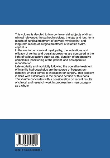 Fifty-two patients operated on for this type of spondylogenic myelo pathy by the anterior approach were reexamined. The male: female re lation was 2 : 1. Fifty percent were males in the 5th decade. About 20% had a congenital narrow spinal canal with an ap-diameter below the minimal standard values (3). The maximum of spondylogenic narrow ing was found between C4 and C6 in 2/3 of the cases. Results: good 44%, satisfactory 31%, unchanged 13%, deteriorated 12%, mortality O. The duration of the neurological symptoms before operation had no in fluence on the surgical results. Final neurological restitution was reached within 1 week to 3 months after the operation. The operative results in patients with congenital narrow spinal canal showed the same percentual distribution as the results of the entire group. No factors could be found to explain the groups of unsatisfactory results. References 1. DECKING, D. , STEEGE, W. ter: Rontgenologische ParametAr der Hals wirbelsaule im seitlichenStrahlengang. Die Wirbelsaule in Forschung und Praxis, ~ (1975) 2. HERRMANN, H. D. : Neurologie in Praxis und Klinik. HOPF, H. C. , POECK, K. , SCHLIACK, N. (Hrsg. ). Stuttgart: Thieme (in press) 3. PIEPGRAS, U. : Neuroradiologie. S. 88-89. Stuttgart: Thieme 1977 114 Classification and Prognosis of Cervical Myelopathy E. HAMEL, R. A FROWEIN, and A KARIMI-NEJAD Introduction Up to the present, 104 patients with cervical myelopathy caused by cervical disk lesions, have been operated on in our clinic.