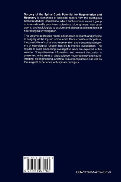 I. Introduction.- A Historical Note and Perspective.- II-A. Basic Science.- 1 Central Nervous System: Structure versus Injury and Regeneration versus Recovery.- 2 Reconstructive Neurosurgery: Novel Strategies Promoting the Regeneration of Injured Dorsal Root Sensory Fibers into the Adult Mammalian Spinal Cord.- 3 The Exuberance of Youth: Application of the Kennard Principle to Studies on Spinal Cord Plasticity.- 4 Vascularization and Vascular Pathophysiology of the Spinal Cord.- II-B. Radiology and Neuroimaging.- 5 The Role of Neuroimaging in Regeneration and Recovery of the Spinal Cord.- 6 Neuroradiologic Features of Spinal Cord Pathology.- 7 Spinal Cord Atrophy.- II-C. Concepts in Bioengineering and Fetal Tissue Transplantation.- 8 Neurocomputing: The Technology and Some Potential Applications to Neurosurgery.- 9 Fetal Tissue Grafts for Cerebellar Atrophy in Humans: A Preliminary Report.- III. Surgical Experience with the Spinal Cord Injury.- 10 Introduction to Intramedullary Tumors.- 11 Intramedullary Spinal Cord Ependymoma: Long-Term Clinical Evaluation after Complete Surgical Removal.- 12 Electrical Stimulation and Microsurgery of the Spinal Cord.- 13 Venous Congestion of the Spinal Cord: A Reversible Mechanism of Myelopathy.- 14 Surgical Treatment of Arteriovenous Malformations of the Spinal Cord.- 15 Syringomyelia.- 16 Surgery of the Infected Spine and Spinal Cord Function.