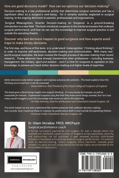 A call to action, Surgical Metacognition: Smarter Decision-making for Surgeons challenges surgeons to understand the processes that underpin decision-making and performance, and how we can use this new knowledge to improve a surgeon's performance both in and outside the operating theatre. As Professor Derek Alderson, Past-President of the Royal College of Surgeons of England, states in the foreword, "better decisions make better surgeons and improve outcomes for patients. This book explains how this thinking occurs and how it can be improved." Decision-making is a core professional activity for surgeons of all levels. It is a distinct high-level skill that is closely associated with the quality of surgical outcomes, patient satisfaction, teamwork, and a surgeon's well-being. Yet it has so far been woefully neglected in surgical training and professional development, with an assumption that these skills develop on their own and cannot be taught or improved. This is an unfortunate and costly oversight that it is time we redress. But how are good decisions and expertise made? And how can we as a profession improve our thinking to optimize our decision-making and train expertise? The answer lies not only in gaining more knowledge and experience, which although essential for good decision-making, do not address the fact that so few of us understand the process itself, let alone how to optimize and teach it. The first step, and focus of this book, is understating 'metacognition'; 'thinking about thinking,' to improve self-awareness, critical thinking and how we make decisions. The profound developments of psychology and decision-science are now well established and have been successfully incorporated into other high-stakes professions such as senior business management, the military and aviation, to significantly improve both professional and personal outcomes. That surgery has yet to implement this knowledge is like a race car driver using a car with technology that is decades old, ignoring developments that would significantly increase performance. It is time for surgery to embrace this knowledge; to advance and modernize the profession with sharper critical thinking and teaching. With many real-world surgical examples, Surgical Metacognition: Smarter Decision-making for Surgeons reviews the psychological understanding of decisions and decision-making from recent decades of research, giving us the tools to improve how we think and teach this fundamental skill of expertise. The book is a groundbreaking introduction to a new field - surgical psychology, that has the potential to transform surgical culture. The first steps of understanding surgical metacognition may feel like learning a new language, but you will start improving as soon as you put this knowledge into practice.