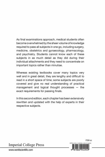 As final examinations approach, medical students often become overwhelmed by the sheer volume of knowledge required to pass all subjects in one go, including surgery, medicine, obstetrics and gynaecology, pharmacology, and psychiatry. Students cannot know each of these subjects in as much detail as they did during their individual attachments and they need to concentrate on important topics rather than minutiae. Whereas existing textbooks cover many topics very well and in great detail, they are lengthy and difficult to read in a short space of time; some subjects are poorly covered and give no real understanding of practical management and logical thought processes - the exact requirements for passing finals. In this second edition, each chapter has been extensively rewritten and updated with the help of experts in their respective subjects.