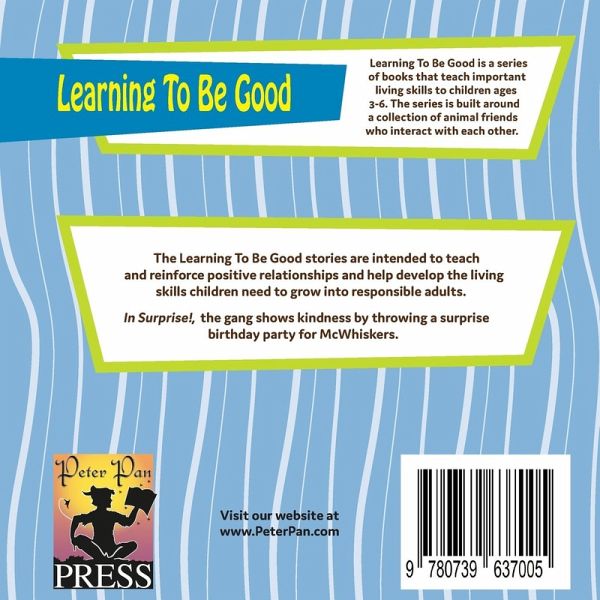 The Learning To Be Good stories are intended to teach and reinforce positive relationships and help develop the living skills children need to grow into responsible adults. In Surprise!, the gang shows kindness by throwing a surprise birthday party for McWhiskers.