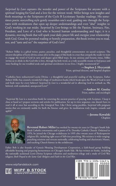 Surprised by Love captures the wonder and power of the Scriptures for anyone with a spiritual longing for God and a love for the written word. Miller brings new insights and fresh meanings to the Scriptures of the Cycle B Lectionary Sunday readings. His sometimes poetic storytelling style gently nourishes one's soul, guiding one through the Scriptures with meditations that open up deeper understandings and even "aha!" insights to God's working in our midst. Surprised by Love brings to life the Passion, Intimacy, Fire, Freedom, and Love of a God who is beyond human understanding and logic; it is a dynamic, moving book that will spark your daily prayer life and energize your relationship with God. Great for personal reading or homily preparation, this book invites you to read, rest, and "taste and see" the surprises of God's love!