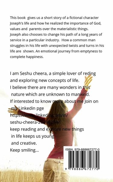 This is a fictional story of Joseph a simple loving Indian family boy who faces a challenge in his life. How the blind beliefs and limited perspective of life change his life and his fall for materialistic things. Through some realization, he turns towards God and tries to restart his life by analyzing the root cause of the problem. There are many twists and turns added to get the real feel of emotions in the story. You will definitely travel through Joseph's life by reflecting upon your milestones. Enjoy reading.