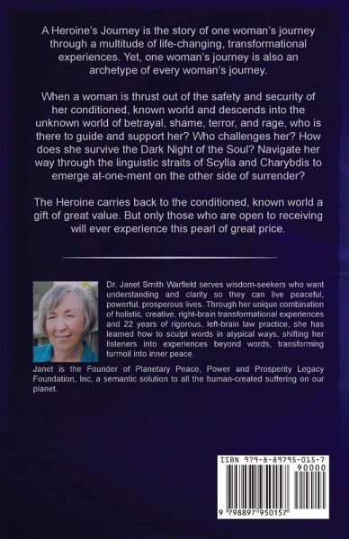 A Heroine's Journey is the story of one woman's journey through a multitude of life-changing, transformational experiences. Yet, one woman's journey is also an archetype of every woman's journey. When a woman is thrust out of the safety and security of her conditioned, known world and descends into the unknown world of betrayal, shame, terror, and rage, who is there to guide and support her? Who challenges her? How does she survive the Dark Night of the Soul? Navigate her way through the linguistic straits of Scylla and Charybdis to emerge at one-ment on the other side of surrender? The Heroine carries back to the conditioned, known world a gift of great value. But only those who are open to receiving will ever experience this pearl of great price.