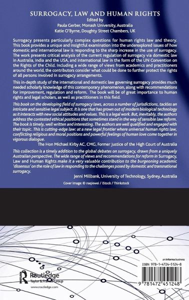 This book examines the effect on domestic and international law, and on human rights law and theory, of the impact of the sharp increase in the use of surrogacy. Featuring a wide range of views from academics and practitioners around the world, the contributors present critical analysis of the current regulation of surrogacy and consider what could be done to further protect the rights of all persons involved in surrogacy arrangements.