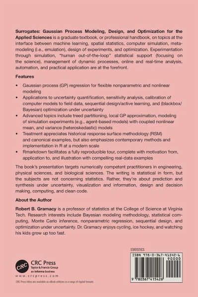 Surrogates is a graduate textbook, on topics at the interface between machine learning,spatial statistics,computer simulation,meta-modeling,design of experiments,and optimization. Experimentation through simulation,management of dynamic processes,online and real-time analysis,automation and practical application are at the forefront.
