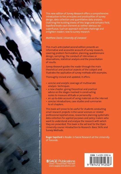 This much-anticipated Second Edition presents an informative and accessible account of survey research. It guides the reader through the main theoretical and practical aspects of the subject and illustrates the application of survey methods through examples. Thoroughly revised and updated, it presents: * Concise and analytic coverage of multivariate analysis techniques * A new chapter giving theoretical and practical advice on the stages involved in constructing scales to measure attitude or personality * An account of using materials on the internet * Concise introductions and summaries to all chapters This book will prove to be equally useful for students conducting small research projects in the social sciences or related professional/applied areas, researchers planning systematic data collection for applied purposes and policy makers who want to understand and analyse the research with whose conclusions they are presented.