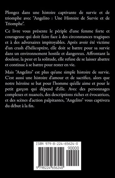 Plongez dans une histoire captivante de survie et de triomphe avec "Angelito : Une Histoire de Survie et de Triomphe". Ce livre vous présente le périple d'une femme forte et courageuse qui doit faire face à des circonstances tragiques et à des adversaires impitoyables. Après avoir été victime d'un crash d'hélicoptère, elle doit se battre pour sa survie dans un environnement hostile et dangereux. Affrontant la douleur, la peur et la solitude, elle refuse de se laisser abattre et continue à se battre pour rester en vie. Mais "Angelito" est plus qu'une simple histoire de survie. C'est aussi une histoire d'amour et de sacrifice, alors que notre héroïne se bat pour l'homme qu'elle aime et pour le petit garçon qui dépend d'elle. Avec des personnages complexes et nuancés, des descriptions riches et évocatrices, et des scènes d'action palpitantes, "Angelito" vous captivera du début à la fin.