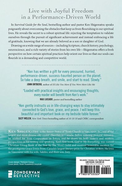 Drawing on a wide range of sources including scripture, church history, psychology, and neuroscience, as well as a variety of stories from his own life, Ken Shigematsu demonstrates how the gospel redeems our desires and reorders our loves. Survival Guide for the Soul offers fresh perspective on how certain spiritual practices help orient our lives.