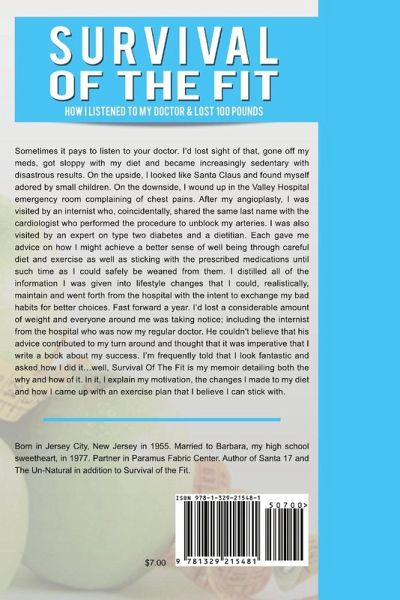 I've lost over 100 pounds and people who've known me a while often remark that I look fantastic and then ask how I did it. Survival of the Fit is my memoir detailing the why and how of my success for those who aren't satisfied with the response of "Careful Diet and Exercise".