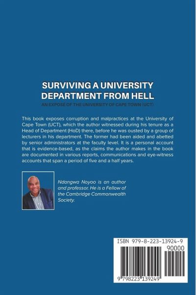 This book exposes corruption and malpractices at the University of Cape Town (UCT), which the author witnessed during his tenure as a Head of Department (HoD) there, before he was ousted by a group of lecturers in his department. The former had been aided and abetted by senior administrators at the faculty level. It is a personal account that is evidence-based, as the claims the author makes in the book are documented in various reports, communications and eye-witness accounts that span a period of five and a half years.