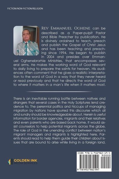There is an inevitable running battle between natives and strangers that several cases in the Holy Scriptures lend credence to. The perennial politics and hiccups of managing migration by nations have spurred this discourse which all and sundry should be knowledgeable about. Herein is useful information for border agencies, migrants and their relatives and even parents who are based back home. It would assist counselors to help potential migrants across the globe. The role of God in the unending conflict between nation's migrant managers and migrants is highlighted here. Parents should read to help them guide their children about issues that are bound to arise while living in a foreign land.