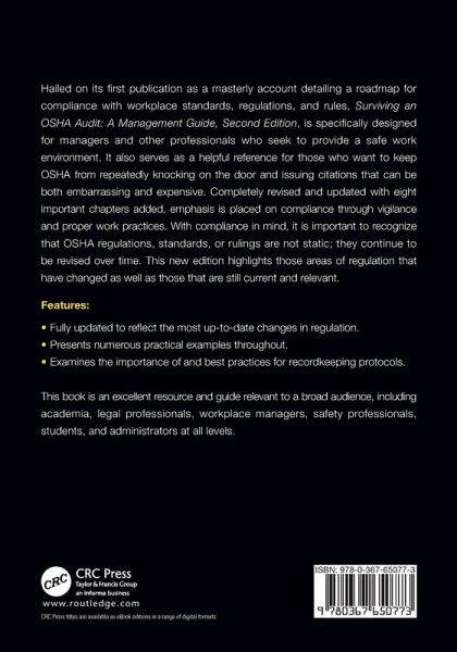 Hailed on its first publication as a masterly account detailing a roadmap for compliance with workplace standards, regulations, and rules, Surviving an OSHA Audit: A Management Guide, Second Edition, is specifically designed for managers and other professionals who seek to provide a safe work environment.