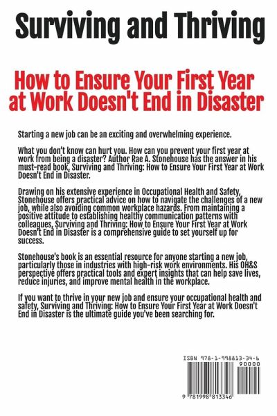 Starting a new job can be an exciting and overwhelming experience. What you don't know can hurt you. How can you prevent your first year at work from being a disaster? Author Rae A. Stonehouse has the answer in his must-read book, Surviving and Thriving: How to Ensure Your First Year at Work Doesn't End in Disaster. Drawing on his extensive experience in Occupational Health and Safety, Stonehouse offers practical advice on how to navigate the challenges of a new job, while also avoiding common workplace hazards. From maintaining a positive attitude to establishing healthy communication patterns with colleagues, Surviving and Thriving: How to Ensure Your First Year at Work Doesn't End in Disaster is a comprehensive guide to set yourself up for success. Stonehouse's book is an essential resource for anyone starting a new job, particularly those in industries with high-risk work environments. His OH&S perspective offers practical tools and expert insights that can help save lives, reduce injuries, and improve mental health in the workplace. If you want to thrive in your new job and ensure your occupational health and safety, Surviving and Thriving: How to Ensure Your First Year at Work Doesn't End in Disaster is the ultimate guide you've been searching for.