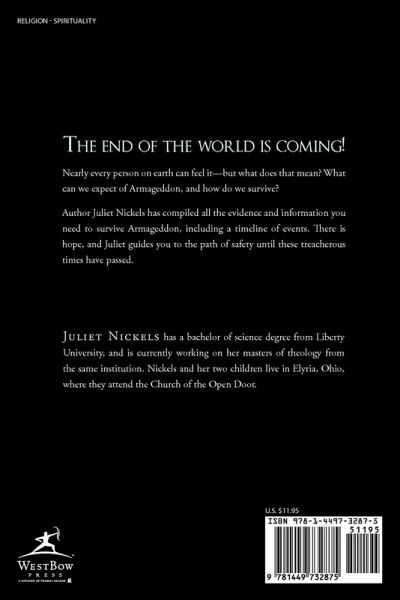 The end of the world is coming! Nearly every person on earth can feel it-but what does that mean? What can we expect of Armageddon, and how do we survive? Author Juliet Nickels has compiled all the evidence and information you need to survive Armageddon, including a timeline of events. There is hope, and Juliet guides you to the path of safety until these treacherous times have passed.