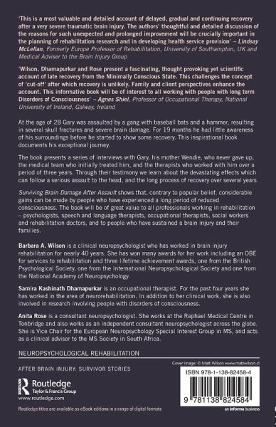 At the age of twenty eight Gary was assaulted by a gang with baseball bats and a hammer, resulting in several skull fractures and severe brain damage. For nineteen months he had little awareness of his surroundings before he started to show some recovery. This inspirational book documents his exceptional journey. The book presents a series of interviews with Gary, his mother Wendie, who never gave up, the medical team who initially treated him, and the therapists who worked with him over a period of three years. Through their testimony we learn about the devastating effects which can follow a serious assault to the head, and the long process of recovery over several years. With specialist rehabilitation and continuing family support Gary has exceeded expectations and, apart from some minor physical problems, he is now a normal young man. Surviving Brain Damage after Assault shows that, contrary to popular belief, considerable gains can be made by people who have experienced a long period of reduced consciousness. The book will be of great value to all professionals working in rehabilitation - psychologists, speech and language therapists, occupational therapists, social workers and rehabilitation doctors, and to people who have sustained a brain injury and their families.